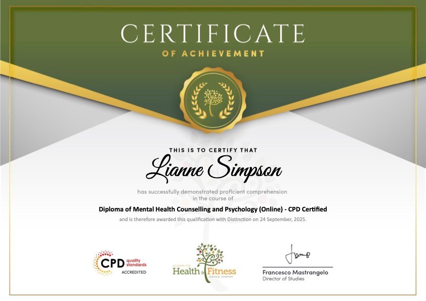 I am thrilled to share that I have successfully completed my Level 7 Diploma in Mental Health Counselling and Psychology!